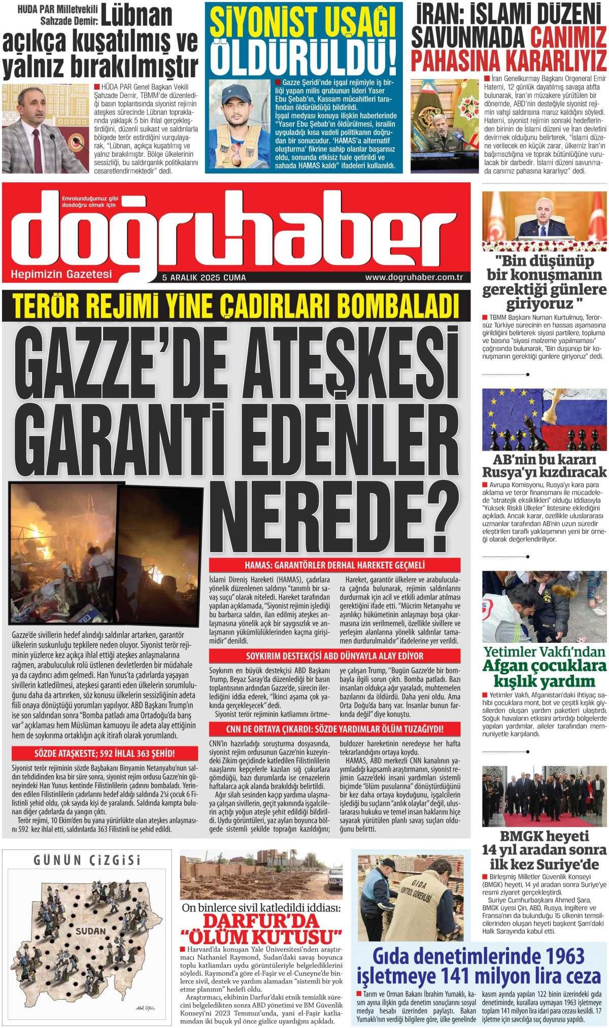 Doğru Haber Gazetesi 6 Aralık 2025 Günü Manşeti