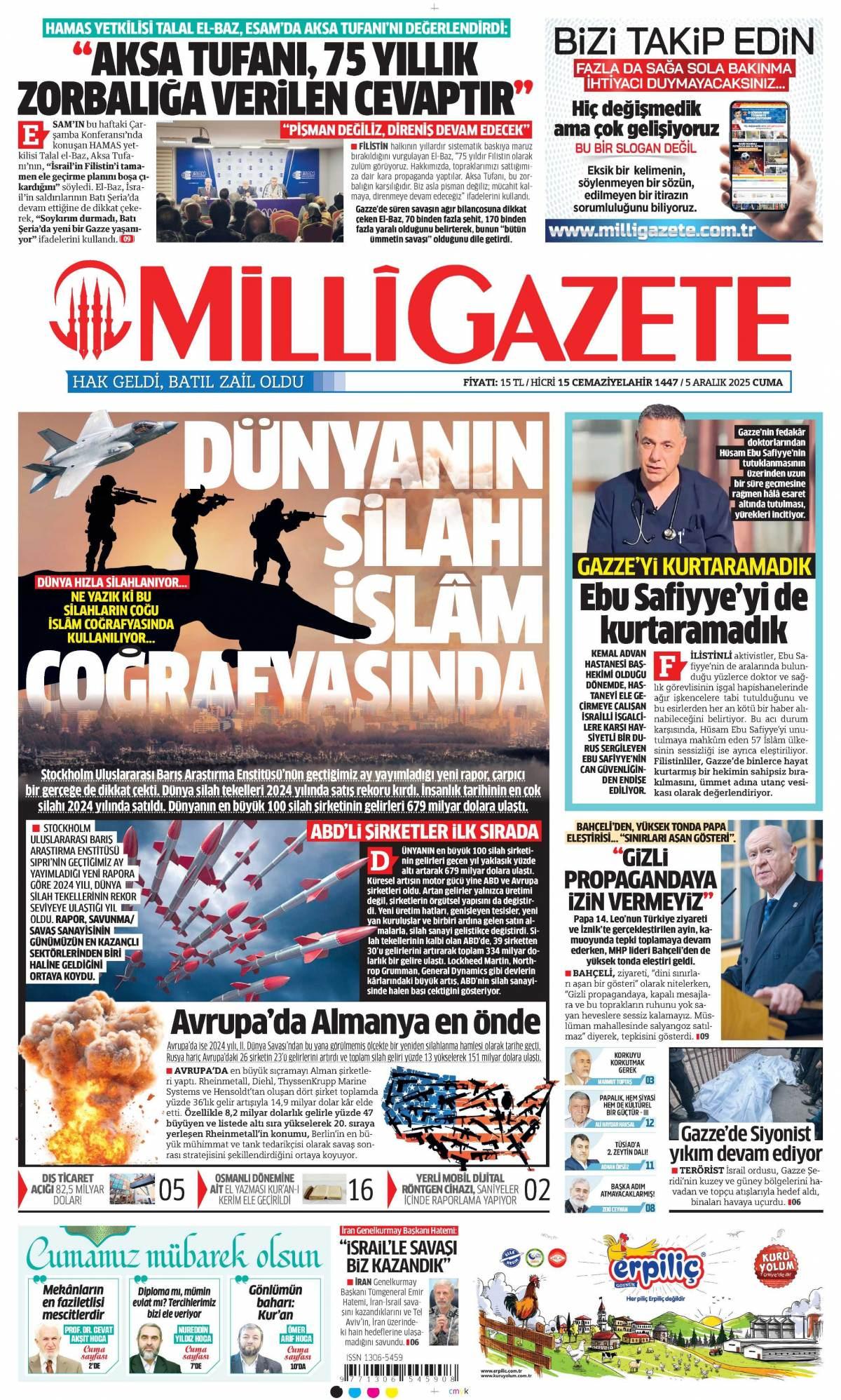 Milli Gazetesi 6 Aralık 2025 Günü Manşeti
