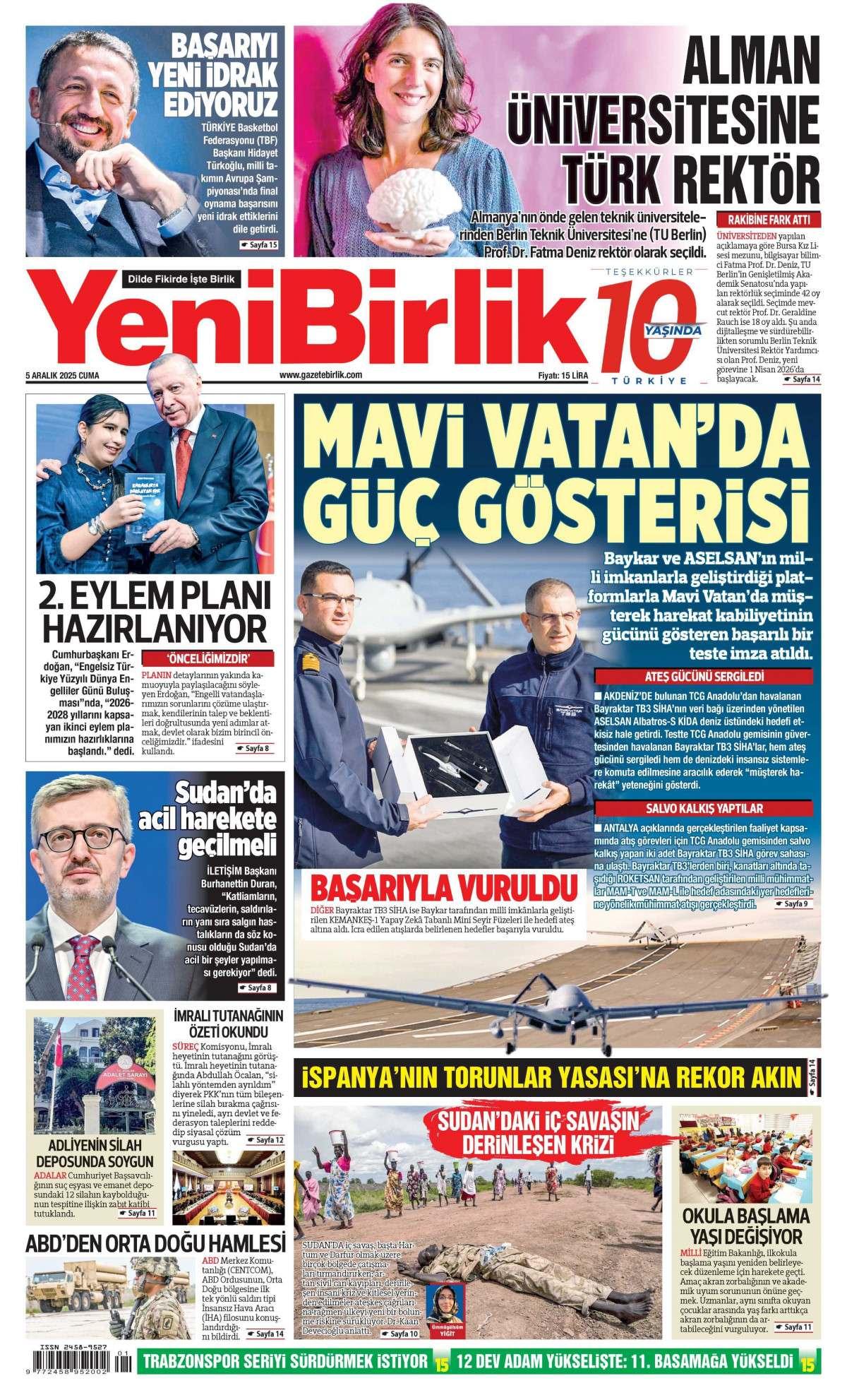Yeni Birlik Gazetesi 6 Aralık 2025 Günü Manşeti